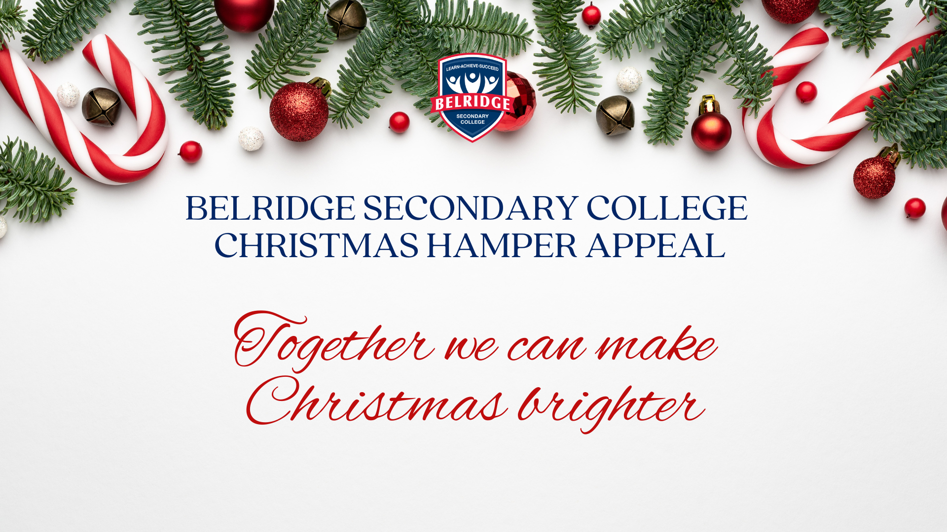 Belridge Secondary College is proud to be running our Christmas Hamper Appeal again this year to help lift the spirits of those facing life challenges or financial struggles. Donations – be it small or large – will be gratefully accepted in the front office from now until Friday 12 December, which will then be made up into hampers.
